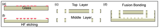 Figure 4c). Finally, the three-layer stack was fusion bonded by annealing at 700 °C (