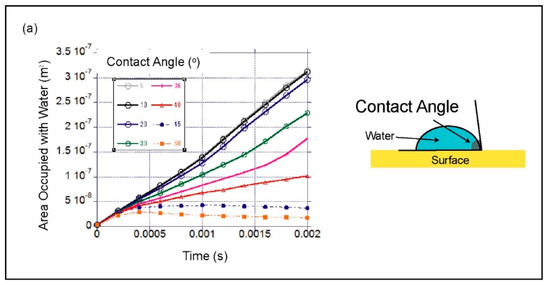 The use of capillary flow significantly simplifies device operation by eliminating the requirement for an external pumping system. Capillary flow depends on the surface wettability dictated by contact angle. Computational modelling was used to analyse the contact angle dependence of the capillary flow. COMSOL Multiphysics (