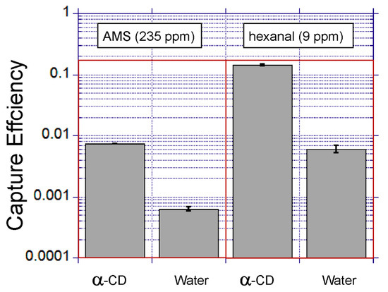 The capture solution was 100 mg mL−1 alpha-cyclodextrin (Sigma, Aldrich, MI, USA, C4642) in pure Milli-Q water, unless otherwise indicated. The solution was freshly prepared each day.