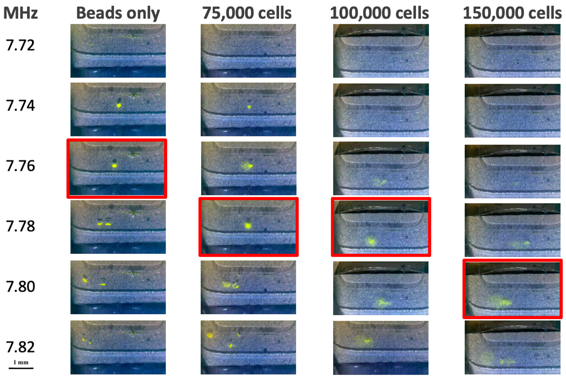 3.2. Effect of Increased E-cell Concentration on Acoustic Trapping Efficiency
