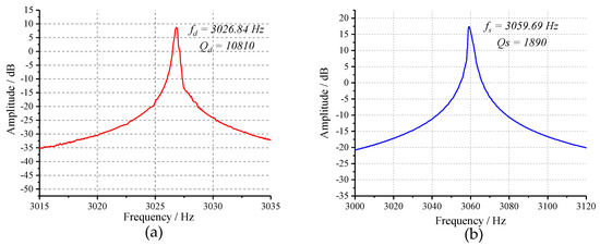 Results of the open-loop sweep-frequency experiment: (a) the drive mode; and (b) the sense mode.
