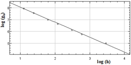 Relationship between the log(gh) and the unit cell length, h, for the micro-/nano-texture in Figure 4, after the box-counting method.