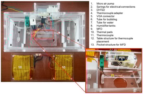 Experimental set-up used to characterize and validate the microfluidic device: mini-incubator and microfluidic device (MFD).