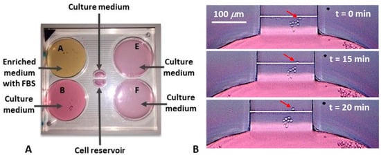- The source (A and B in Figure 1A) was filled with the appropriate volumes: one (A) with the enriched medium (3750 μL), the other (B) with the culture medium (3961 μL).