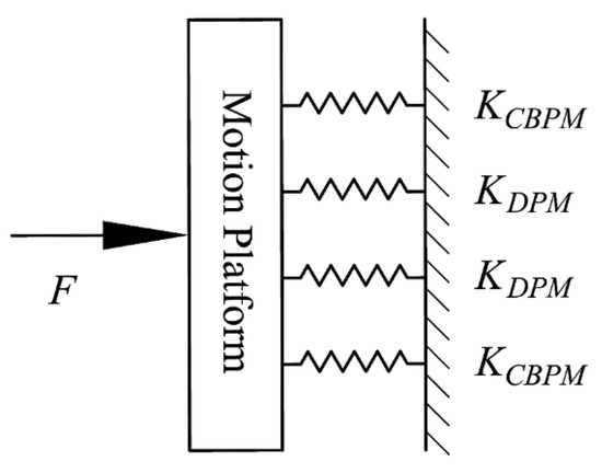 Substituting Equation (3) into Equations (5), (8), and (9), the lateral stiffness of the double parallelogram mechanism KDPM can be derived as