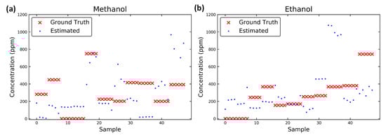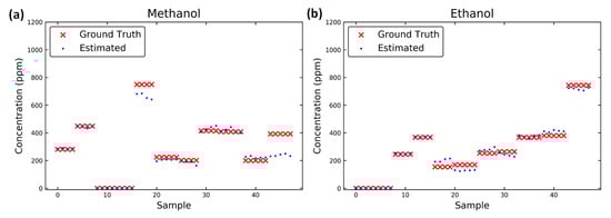 - Xu, Y.; Zhao, X.; Chen, Y.; Zhao, W. Research on a mixed gas recognition and concentration detection algorithm based on a metal oxide semiconductor olfactory system sensor array. Sensors 2018, 18, 3264. [Google Scholar] [CrossRef] [PubMed]