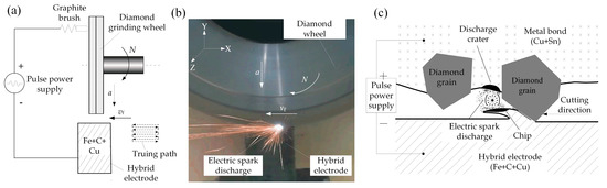 - Wang, Y.; Zhou, X.J.; Hu, D.J. An experimental investigation of dry-electrical discharge assisted truing and dressing of metal bonded diamond wheel. Int. J. Mach. Tools Manuf. 2006, 46, 333–342. [Google Scholar] [CrossRef]