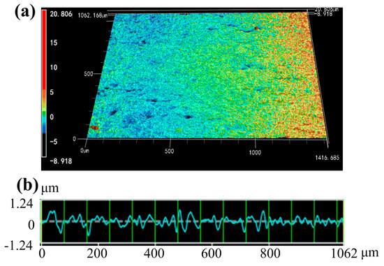 3D topography and roughness curve of ground sapphire glass surface: (a) 3D topography and (b) roughness curve.