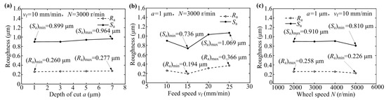 Effects of different grinding process parameters on surface roughness of sapphire glass: (a) depth of cut a; (b) feed speed vf and (c) wheel speed N.