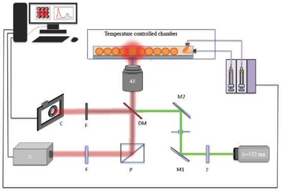 - Ebert, S.; Travis, K.; Lincoln, B.; Guck, J. Fluorescence ratio thermometry in a microfluidic dual-beam laser trap. Opt. Express 2007, 15, 15493–15499. [Google Scholar] [CrossRef] [PubMed]