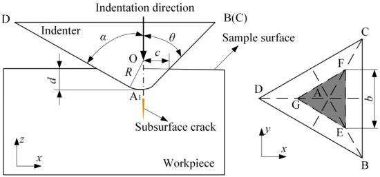 - Lawn, B.R.; Swain, M.V. Microfracture beneath point indentations in brittle solids. J. Mater. Sci. 1975, 10, 113–122. [Google Scholar] [CrossRef]