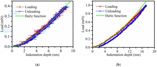 - The stages of brittle material deformation (elastic, plastic, and brittle) can be characterized by the load versus indentation depth curves through the nanoindentation test. The curve of the elastic deformation stage follows the Hertz contact theory, and the plastic deformation occurs in nanoindentation at an indentation depth of up to 10 nm.