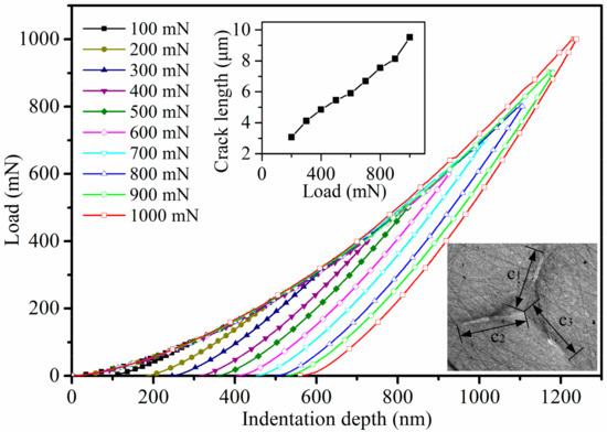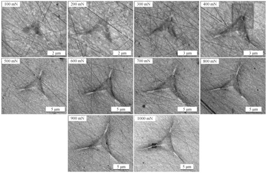2.4. Determination of the Critical Indentation Depth for the Plastic–Brittle Transition