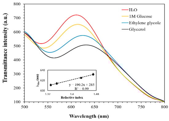 3.2. Sensitivity Evaluation of the COP Film via Transmittance Spectrum Peak Red-Shift
