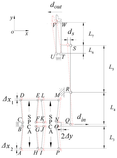 - Luo, Y.; Liu, W.; Wu, L. Analysis of the displacement of lumped compliant parallel-guiding mechanism considering parasitic rotation and deflection on the guiding plate and rigid beams. Mech. Mach. Theory 2015, 91, 50–68. [Google Scholar] [CrossRef]