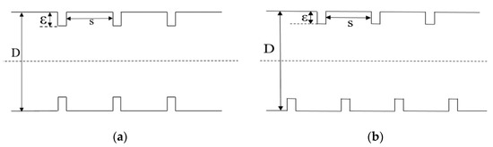 Figure 14. Structures of symmetrically and asymmetrically distributed rough elements. (a) Symmetric distribution; (b) Asymmetric distribution.