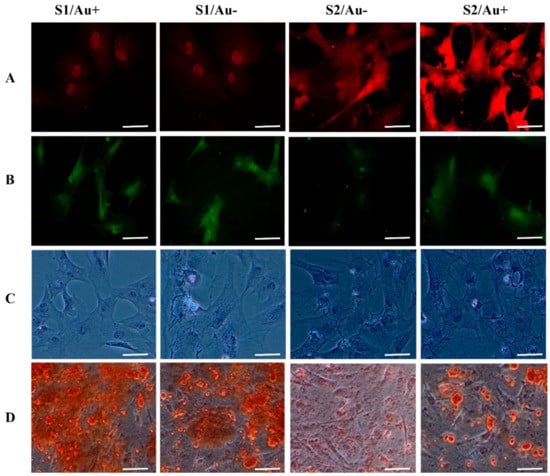 - Yi, C.; Liu, D.; Fong, C.-C.; Zhang, J.; Yang, M. Gold nanoparticles promote osteogenic differentiation of mesenchymal stem cells through p38 MAPK pathway. ACS Nano 2010, 4, 6439–6448. [Google Scholar] [CrossRef]