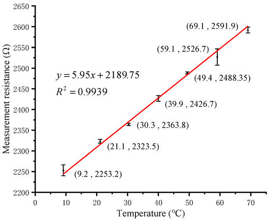 As stated previously, RTD is widely used to measure temperature. Its resistance-temperature characteristic can be expressed as Equation (7).