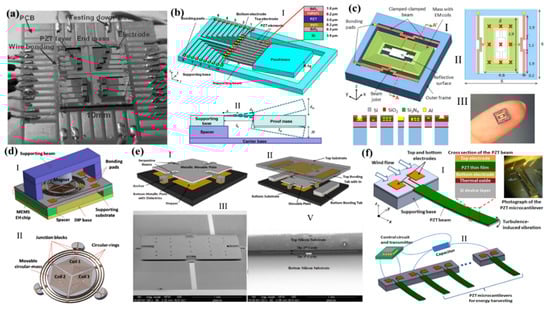 - Liu, H.; Quan, C.; Tay, C.J.; Kobayashi, T.; Lee, C. A MEMS-based piezoelectric cantilever patterned with PZT thin film array for harvesting energy from low frequency vibrations. In Physics Procedia; Elsevier B.V.: Amsterdam, The Netherlands, 2011; Volume 19, pp. 129–133. [Google Scholar]