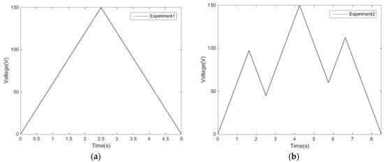 (3) Similarly, experiment 2 is carried out. The reciprocating linear voltage signal is recorded, as shown in Figure 4b.