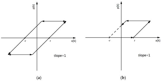 The classical PI model is a weighted superposition of a finite number of Play operators. The Play operator is shown in Figure 6a. When the input signal is , the Play operator expression with the threshold is: