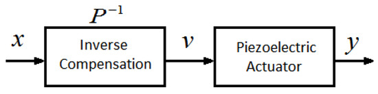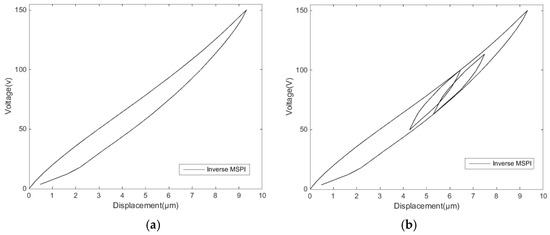 The MSPI model obtains an accurate approximation of the voltage–displacement correspondence. In order to achieve accurate compensation of the linear displacement, the displacement–voltage correspondence of the MSPI inverse model is used as a feedforward control. According to the compensation control principle [31], the MSPI inverse model is the inverse function of the hysteresis characteristic curve, as shown in Figure 14.