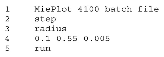 31. Philip Laven. MiePlot. Available online: http://www.philiplaven.com/mieplot.htm#Download%20MiePlot (accessed on 26 March 2019).