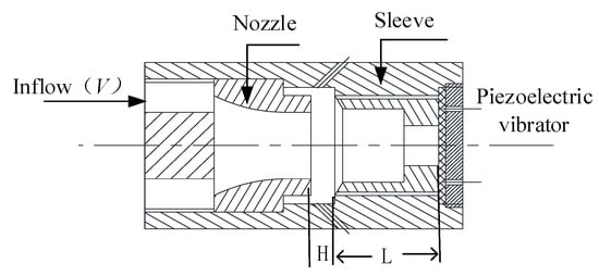 In accordance with Equation (8), we designed the structure size of the annulus, resonant cavity, and wedge, and selected four experimental prototypes. We took the annulus as X, the distance from the nozzle to the wedge as H, the length of the cavity as L, and the diameter as D. The structure parameters are shown in Table 1.