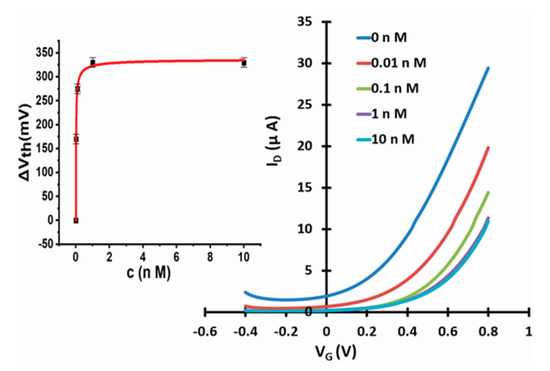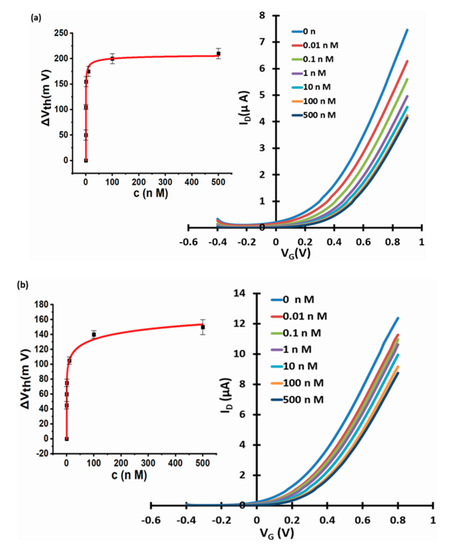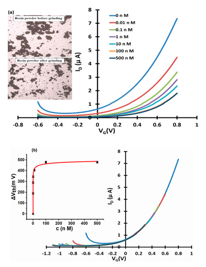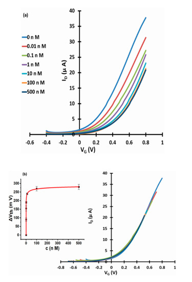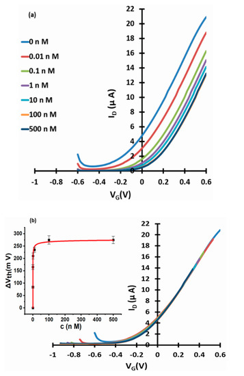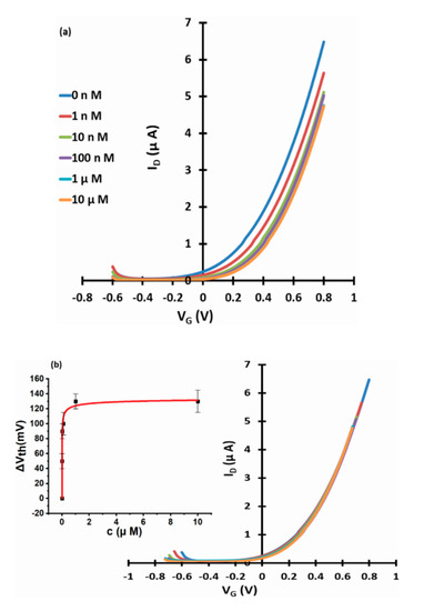 - Alghamdi, N.; Alqahtani, Z.; Grell, M. Sub-nanomolar detection of cesium with water-gated transistor. J. Appl. Phys. 2019, 126, 64502. [Google Scholar] [CrossRef]