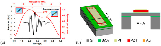 - Sun, C.; Shi, Q.; Yazici, M.S.; Kobayashi, T.; Liu, Y.; Lee, C. Investigation of broadband characteristics of multi-frequency piezoelectric micromachined ultrasonic transducer (MF-pMUT). IEEE Sens. J. 2019, 19, 860–867. [Google Scholar] [CrossRef]