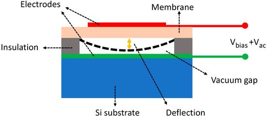 - Haller, M.I.; Khuri-Yakub, B.T. A surface micromachined electrostatic ultrasonic air transducer. IEEE Trans. Ultrason. Ferroelectr. Freq. Control 1996, 43, 1–6. [Google Scholar] [CrossRef]