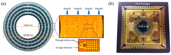 - Nikoozadeh, A.; Chang, C.; Choe, J.W.; Bhuyan, A.; Lee, B.C.; Moini, A.; Khuri-Yakub, P.T. An integrated ring CMUT array for endoscopic ultrasound and photoacoustic imaging. In Proceedings of the IEEE International Ultrasonics Symposium, IUS, IEEE, Prague, Czech Republic, 21–25 July 2013; pp. 1178–1181. [Google Scholar]