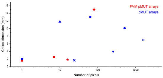 | Marker | Type of MUTs | Chip Dimension (mm) | Frequency (MHz) | Ref. |