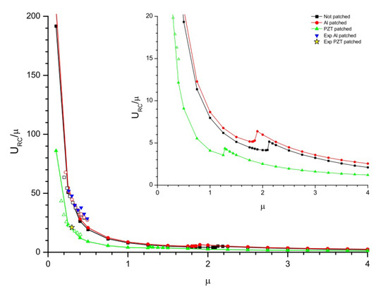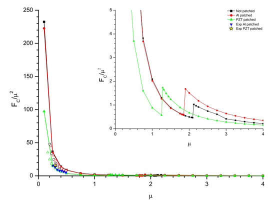 The same strategy is applied for the prediction of the relation between flutter frequency and the mass ratio as represented in Figure 13. The mass ratio can be defined mathematically as where is an ordinate, is the reduced critical frequency and is the critical frequency. From the experimental and numerical data represented in Figure 13, it is observed that the trend followed by the is almost the same as followed by the in Figure 12 for different flag lengths. From Figure 12 and Figure 13 it is observed that flags with smaller lengths are highly sensitive to the critical velocity and frequency respectively while flags with larger lengths are less sensitive to the critical flow velocity and frequency respectively.
