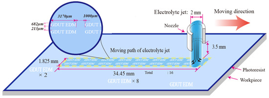 - Wu, M.; Liu, J.; He, J.; Chen, X.; Guo, Z. Fabrication of surface microstructures by mask electrolyte jet machining. Int. J. Mach. Tools Manuf. 2020, 148, 103471. [Google Scholar] [CrossRef]