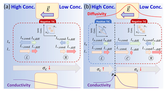 Therefore, as the solution conductivity gradient is in the same direction as the external electric field, negative TIC occurs. In contrast, positive TIC appears when the external electric field is opposite to the local solution conductivity gradient, validating our analysis in Figure 4.