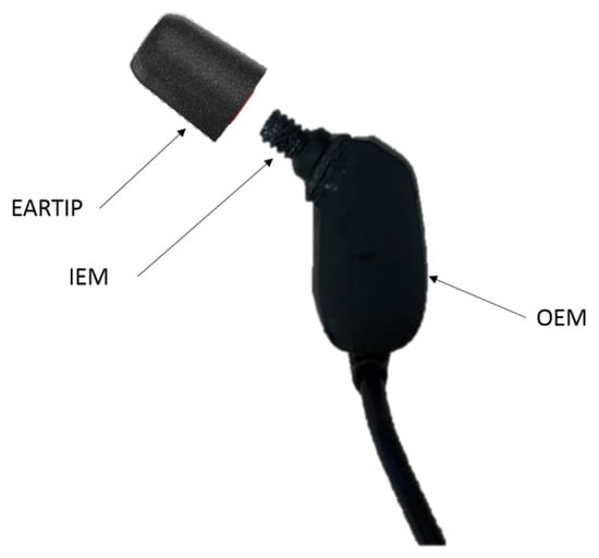 The left cup is equipped with an earphone with two miniature microphones: In-Ear Microphone (IEM) and Outer Ear Microphone (OEM) as shown in Figure 2. The earphone is fitted into the earcanal using a generic foam earpiece called EARTIP (Comply, Oakdale, MN, USA).