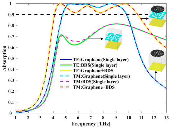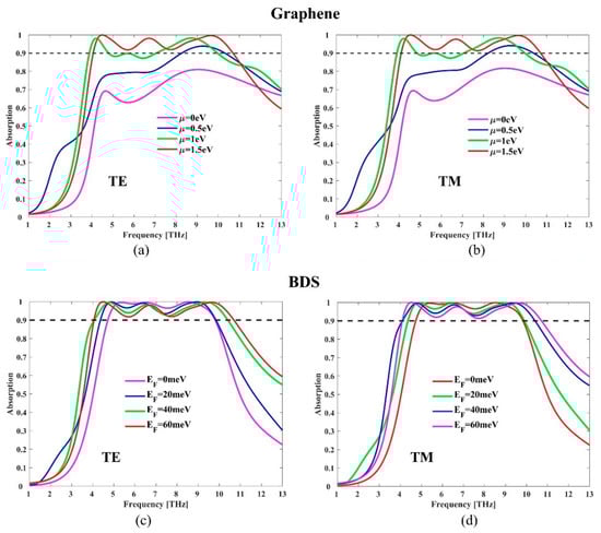 - Fu, P.; Liu, F.; Ren, G.J.; Su, F.; Li, D.; Yao, J.Q. A broadband metamaterial absorber based on multi-layer graphene in the terahertz region. Opt. Commun. 2018, 417, 62–66. [Google Scholar] [CrossRef]