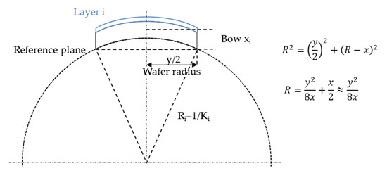 Considering the same assumptions as before, it is possible to calculate the in-plane-distortion as a function of the wafer bow Δx: