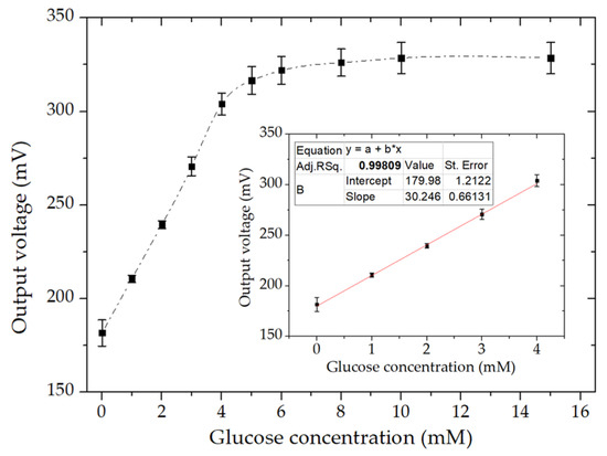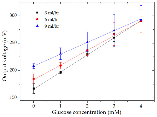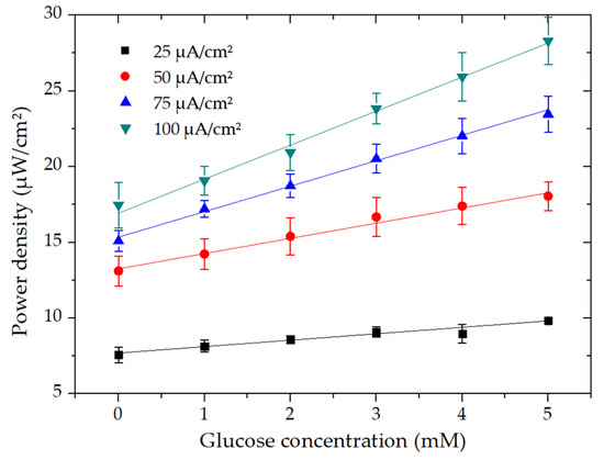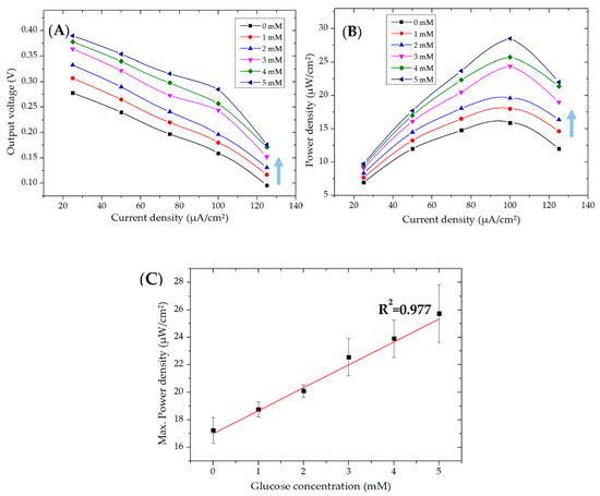 3.2. Microfluidic EBFC Characterization for Glucose Biosensing