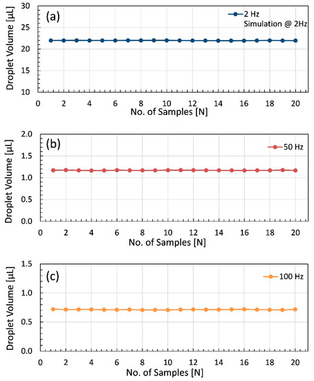 - Lu, S.; Chen, X.; Zheng, H.; Zhao, Y.; Long, Y. Simulation and Experiment on Droplet Volume for the Needle-Type Piezoelectric Jetting Dispenser. Micromachines 2019, 10, 623. [Google Scholar] [CrossRef]