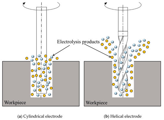- Tsui, H.P.; Hung, J.C.; You, J.C.; Yan, B.H. Improvement of electrochemical microdrilling accuracy using helical tool. Mater. Manuf. Process. 2008, 23, 499–505. [Google Scholar] [CrossRef]