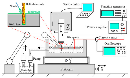 - Wang, M.H.; Zhang, Y.B.; He, Z.W.; Peng, W. Deep micro-hole fabrication in EMM on stainless steel using disk micro-tool assisted by ultrasonic vibration. J. Mater. Process Tech. 2016, 229, 475–483. [Google Scholar] [CrossRef]