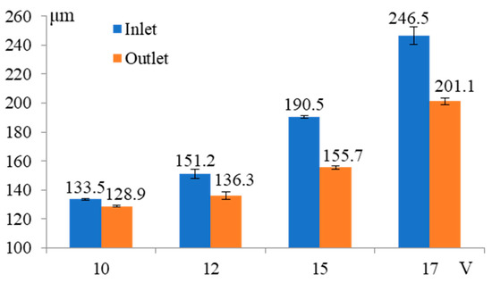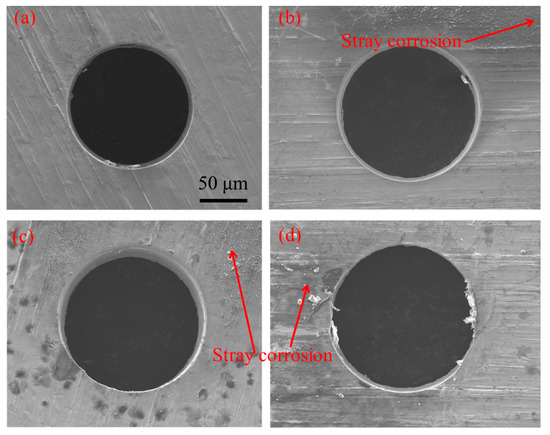 3.1. Influence of Machined Voltage on the Machining of Micro Through-Hole