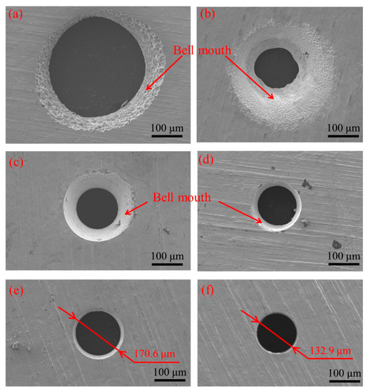 3.2. Influence of Pulse Frequency on the Machining of Micro Through-Hole