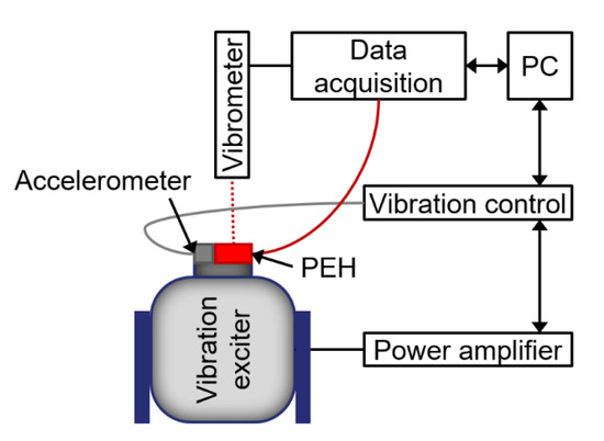 Figure 9. Measurement setup, based on vibration excitation of PEH for determination of PM.