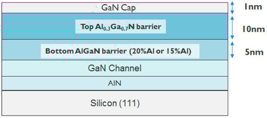 Schematic of the epitaxy structure with a double AlGaN barrier used in this study.