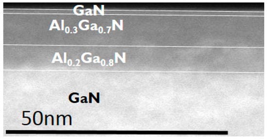 Transmission electron microscopy (TEM) images of the epitaxy structure with a double AlGaN barrier.