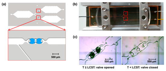 - Wang, J.; Chen, Z.; Mauk, M.; Hong, K.-S.; Li, M.; Yang, S.; Bau, H.H. Self-Actuated, Thermo-Responsive Hydrogel Valves for Lab on a Chip. Biomed. Microdevices 2005, 7, 313–322. [Google Scholar] [CrossRef]