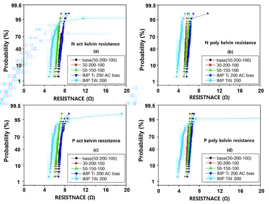 - Schulze, S.; Wolansky, D.; Katzer, J.; Schubert, M.A.; Costina, I.; Mai, A. Impact of TiN Barrier Layer on Contact Resistance of Tungsten Filled Vias. IEEE Trans. Semicond. Manuf. 2018, 31, 528–534. [Google Scholar] [CrossRef]